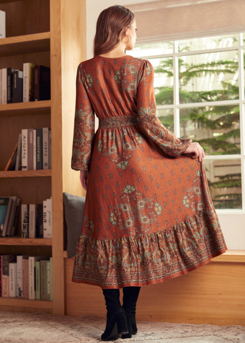 Avvolgiti nel calore della nostalgia con l’abito midi Goldie Hour. Questo capo del nostro marchio omonimo ModCloth emana un fascino rustico con il suo motivo paisley color terracotta su morbido tessuto a maglia. Le maniche lunghe a palloncino e il pannello a smock ne esaltano il tocco vintage, mentre le tasche aggiungono un tocco di funzionalità moderna. Il tessuto elasticizzato e lo scollo a V impreziosito da dettagli con bottoni lo rendono una scelta accogliente ma chic per gli incontri invernali o una romantica serata al drive-in.