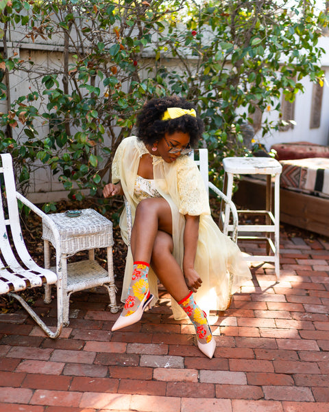 Non per i deboli di cuore, il nostro calzino trasparente Flower Power è audace e luminoso. Fiori rosso-arancio vivaci, giallo sole e acquamarina brillante esplodono su uno sfondo trasparente, creando la perfetta armonia tra eccentricità ed eleganza. Un delicato accento rosa aggiunge un tocco inaspettato, rendendo questo calzino un vero e proprio spunto di conversazione.