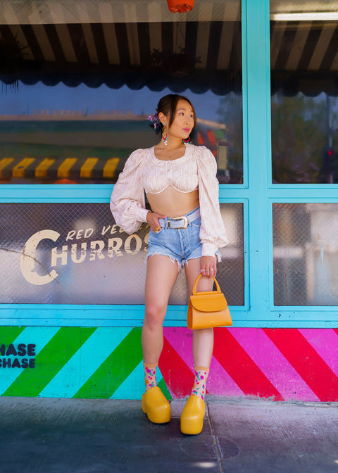 Sentitevi in ​​primavera tutto l’anno con queste calze floreali dai colori vivaci, abbinate a un tacco audace e a un delicato tessuto trasparente. Queste calze floreali trasparenti sono pensate per essere indossate con le vostre scarpe di transizione stagionale, come un sandalo con tacco o un sandalo chiuso.