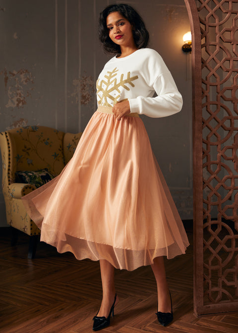 Avvolgiti nella serenità dello stile innevato con la felpa Winter’s Whisper Snowflake del nostro marchio ModCloth. In una delicata tonalità crema di seta, impreziosita da fiocchi di neve, questa felpa in maglia incarna la tranquilla bellezza di un paesaggio invernale. Che tu stia partecipando a feste all’aperto o rilassandoti in casa, questo capo è un omaggio, baciato dai fiocchi di neve, al lato più dolce dell’inverno.