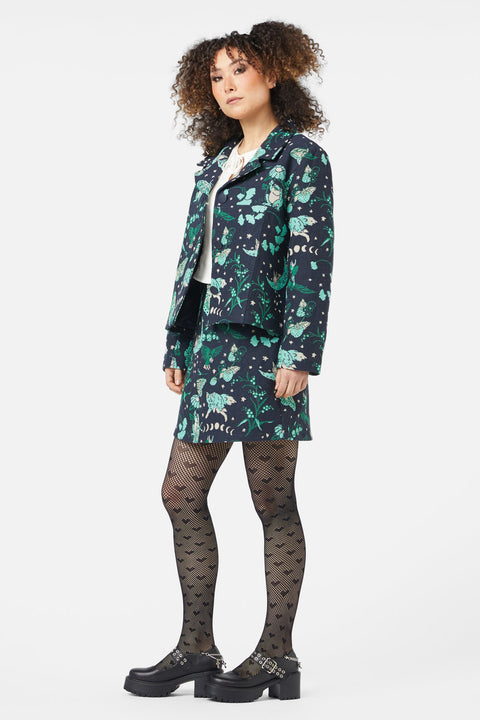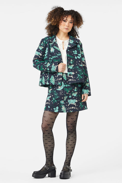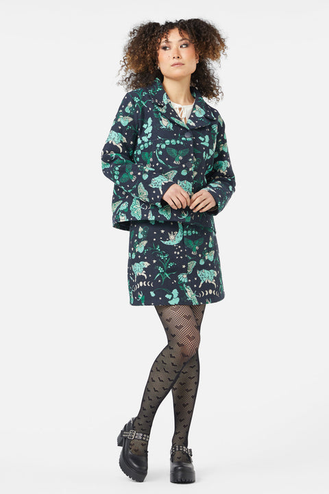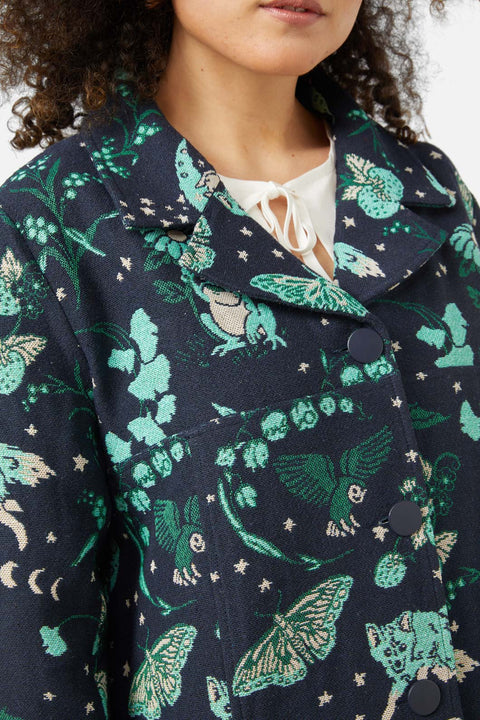 Immergiti nel mondo mistico con la Giacca Foresta Proibita, caratterizzata da un’intricata lavorazione in broccato che aggiunge un tocco unico a qualsiasi outfit. Questa giacca dal taglio squadrato presenta un colletto sagomato e un’abbottonatura frontale, che uniscono un look audace a un tocco incantevole. Realizzata in broccato intrecciato, offre texture e profondità , rendendola un capo eccezionale. Disponibile in una fantasia multicolore.