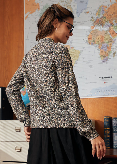 Aggiungi un tocco di charme al tuo look quotidiano con la Knot Your Average Blouse del nostro marchio ModCloth. Questa blusa a maniche lunghe presenta uno scollo a fiocco, chiusura con bottoni sul davanti e una vestibilità comoda che si infila facilmente in gonne o pantaloni. La stampa Petite Posy è un delicato motivo floreale su sfondo nero, che la rende un capo versatile, perfetto da indossare a strati per il lavoro, il weekend o ovunque ti porti la fantasia.