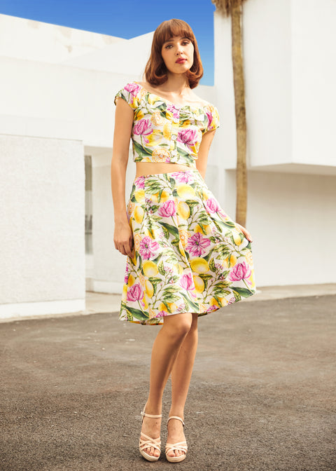 Dolce, strutturato e perfetto per le giornate di sole, il top “The Zest Is Yet to Come” del nostro marchio ModCloth è un sogno agrumato che si avvera. Caratterizzato da un’audace stampa floreale al limone, questo grazioso top corto affascina con le sue maniche corte, lo scollo a cuore e la chiusura con bottoni sul davanti. La parte posteriore arricciata aggiunge una vestibilità comoda e flessibile, perfetta da abbinare alla gonna coordinata o da indossare da solo per un tocco di stile retrò.
