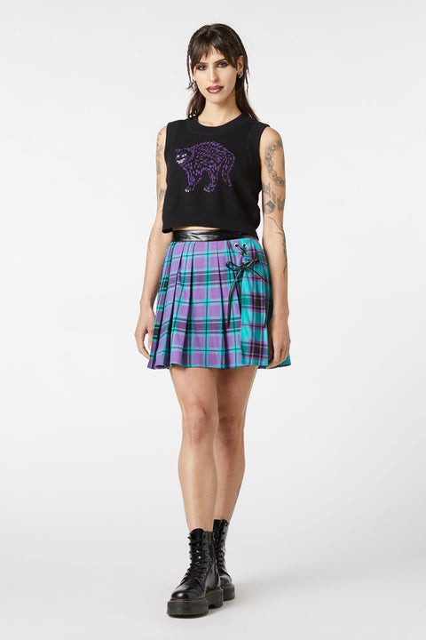 Entra nell’ombra con un tocco malizioso con il maglione Grinning Cat Placement di Dangerfield. Questo maglione senza maniche di ispirazione gotica è realizzato in morbido cotone 100%, offrendo comfort e carattere. Lo scollo rotondo e la lunghezza corta creano una silhouette che valorizza la figura, mentre l’audace disegno del gatto sorridente sul davanti aggiunge un tocco di fascino inquietante.