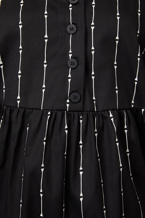 Entra nello spirito spettrale con il grembiule con ossa divertenti, un capo di ispirazione gotica che aggiunge un tocco giocoso al tuo guardaroba. Caratterizzato da una grafica a righe con ossa su tutta la superficie, questo grembiule dalla vestibilità rilassata combina vibrazioni dark e spigolose con un design divertente e stravagante. Lo stile senza maniche e lo scollo rotondo offrono versatilità , mentre la lunghezza midi offre una silhouette lusinghiera e facile da indossare.