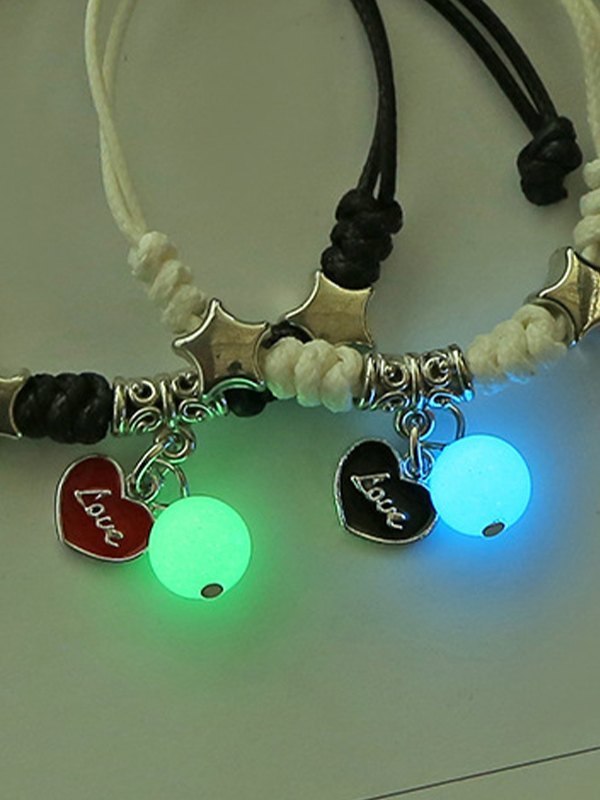 1 par de pulseras de cuerda trenzada con cuentas luminosas