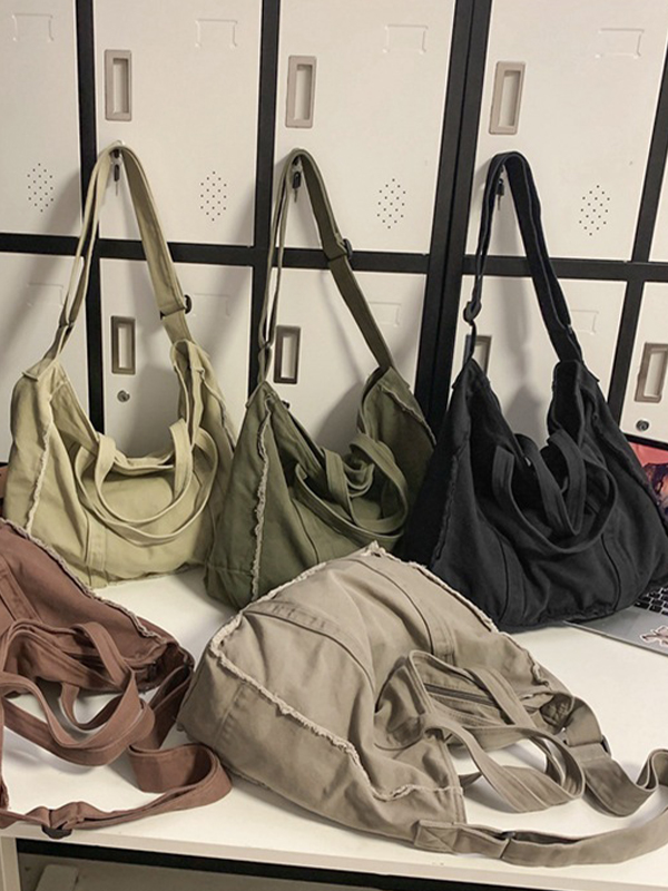 Detalles: Esta bandolera con diseño de lona que es casual, también tiene rebabas como decoración con grandes capacidad.