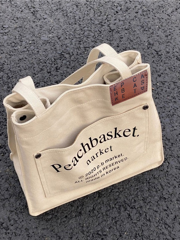 Detalles: Este bolso tote presenta un dise帽o de lona vintage, tiene estampados de letras como adornos.