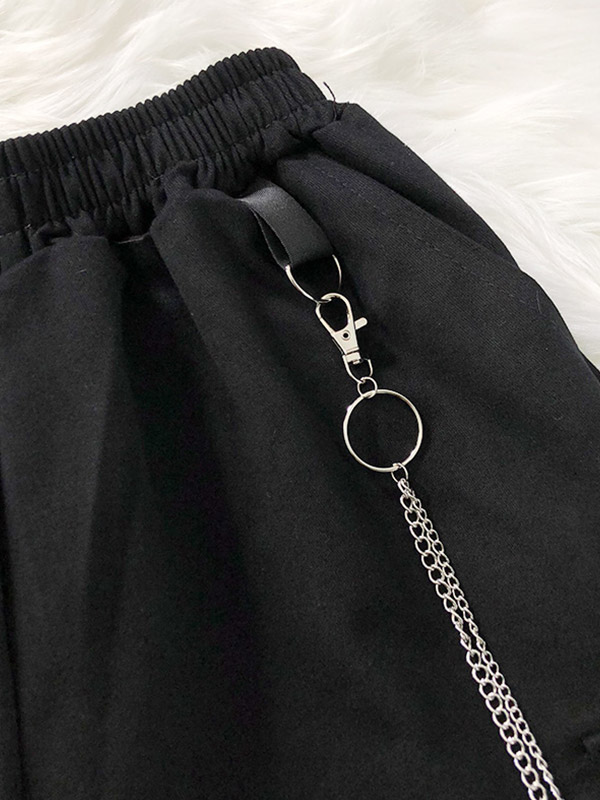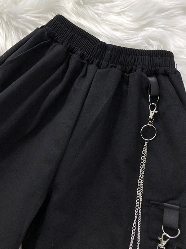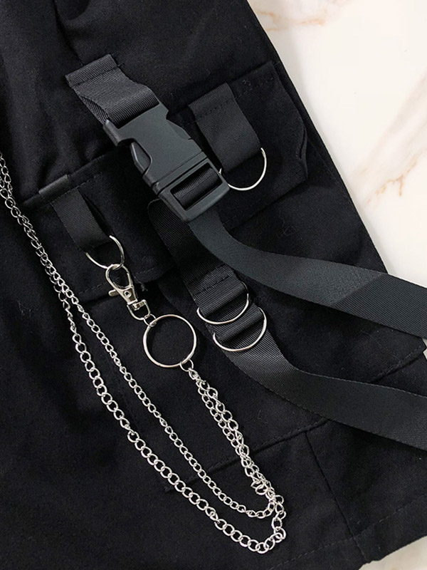 Estilo: Informal/Callejero/Hip Pop/Punk/Grunge Contenido de la tela: Mezcla de algodón Tipo de calce: Calce normal Descripción: Estos shorts tienen la forma de un calce de pierna recta, se ajustan a una cintura elástica, cuentan con longitud media, bolsillos cargo parcheados con correa con hebilla diseño y cadena desmontable en la parte delantera.