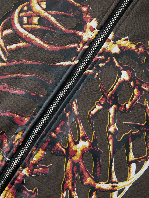 Estampado de esqueleto: Soporte Destaca entre la multitud con este llamativo estampado de esqueleto en la parte delantera y trasera, que muestra un ambiente urbano y fresco que es perfecto para ocasiones informales y eventos hip pop.