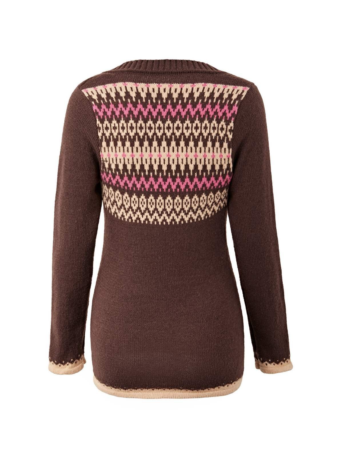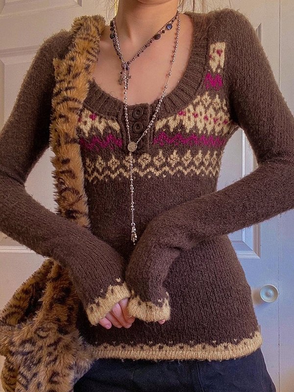 Descripción: Te encantará este jersey nostálgico de los 90, es retro. Tiene una silueta de palangre, cuenta con jacquard en contraste y cuello grueso acanalado con diseño de cierre de botón.