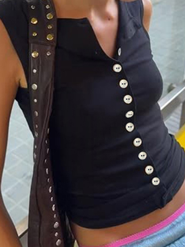 Sé el primero en valorar “Camiseta sin mangas con cuello en V y botones”
