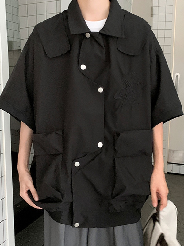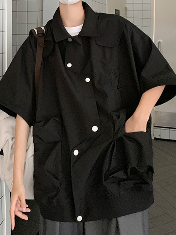 Sé el primero en valorar “Blusa de manga corta con botones a presión y bolsillo grande bordado para hombre”