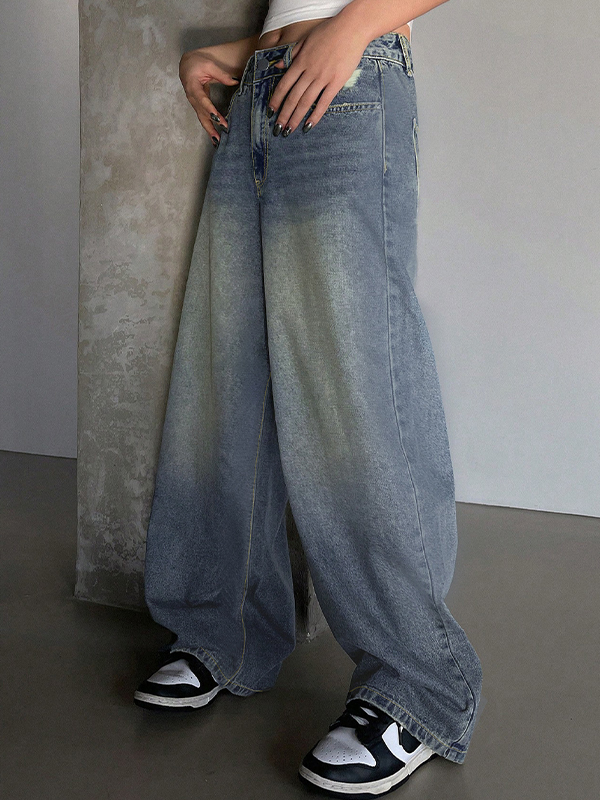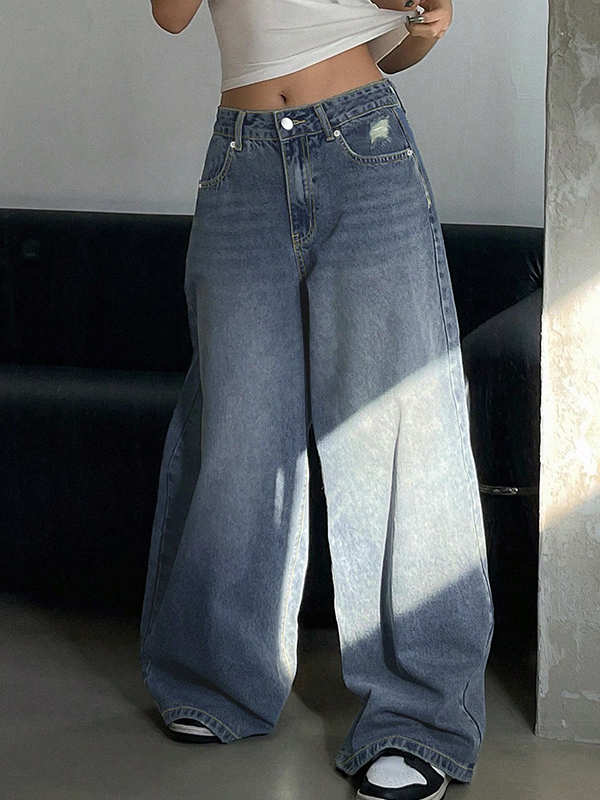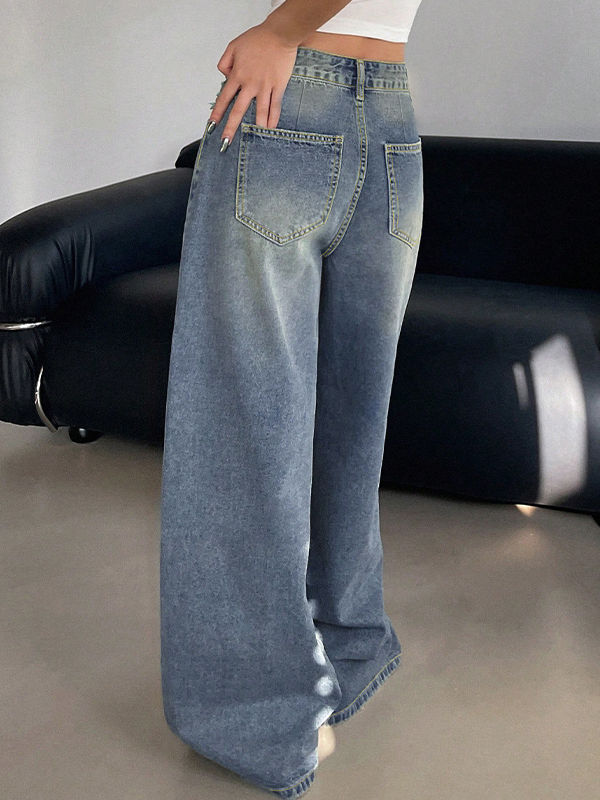Vaqueros boyfriend con pernera ancha y efecto lavado azul