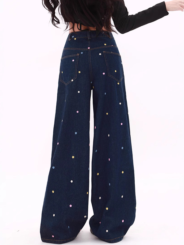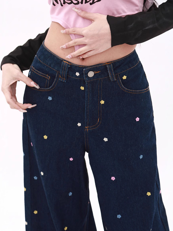 Sé el primero en valorar “Vaqueros boyfriend retro con bordado floral en azul oscuro”