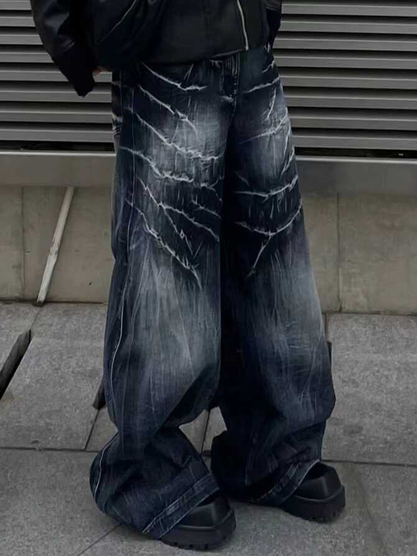 Vaqueros holgados con efecto tie dye y diseño de relámpagos para hombre