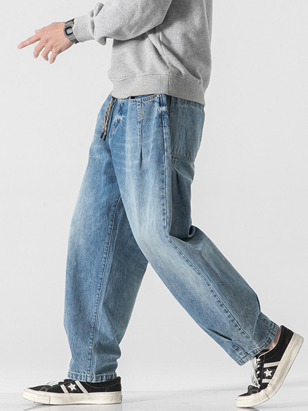 Vaqueros holgados con piernas anchas, color azul, holgado, retro japonés